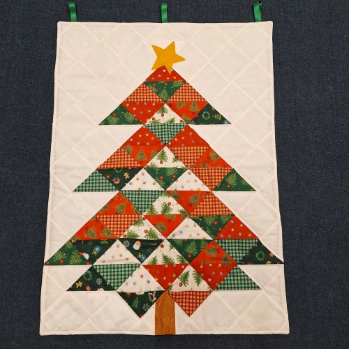 This time there is a large panel in the centre and fabric with a border stripe used for (surprise surprise) the borders BUT the most interesting thing is the two sizes of the same pieced block - one used for the inner border, the other used for the outer cornerstones, reversal of the colourway means they are similar in look but not the same.